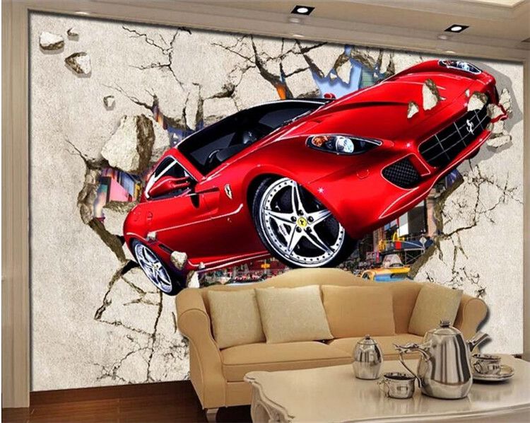 Yosot Yosot Personnalise Murale Papier Peint 3d Rouge Voiture Casse