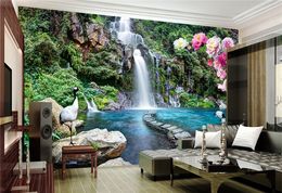 3d Papier Peint 3d Murale Montagne Flux Cascade Pour Tv Canape Fond