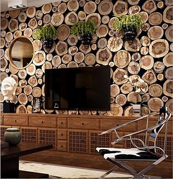 Rouleau De Papier Peint Effet Bois Empile Papier Peint Art 3d Papier