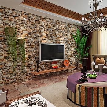 Papier Peint Imitation Pierre Decoration Murale Originale Living