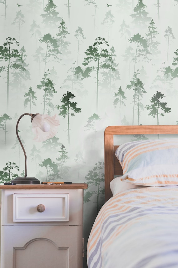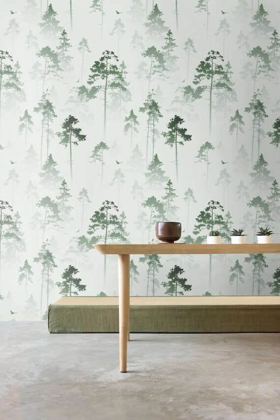 Papier Peint Vert Sapin Fond Decran Arbres Papier Peint Etsy