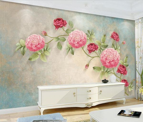 Personnalise 3d Stereo Fleurs Rose Peintures Murales Papier Peint