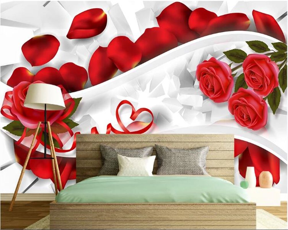 Acheter Romantique 3d Papier Peint Murale Rouge Rose Photo Fond