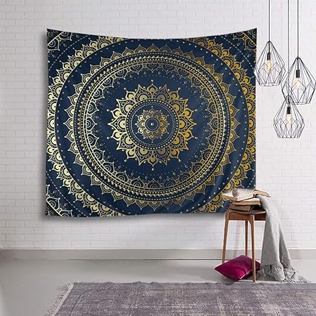Tapisserie De Mandala Indien Hippie Tenture Murale Boheme Dore
