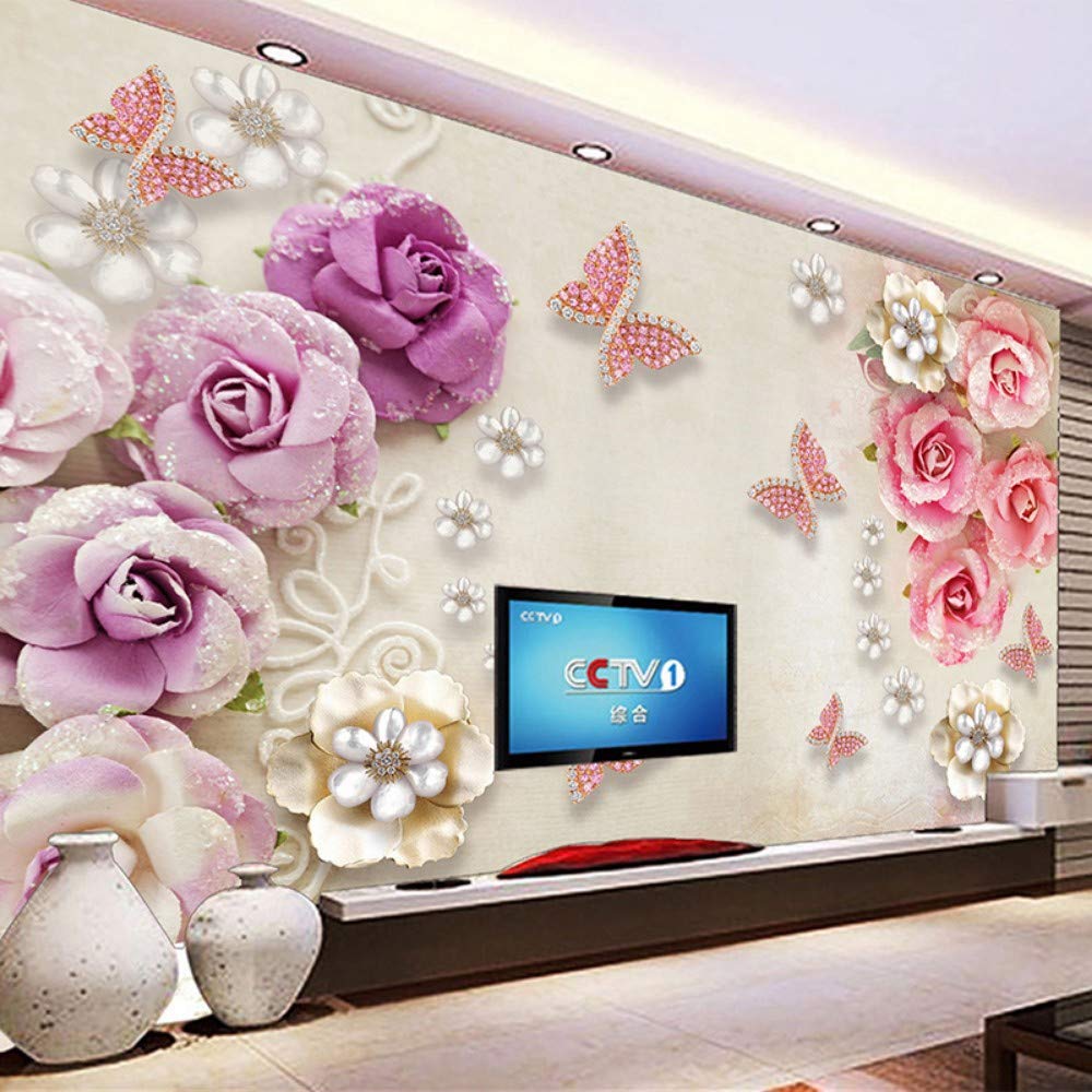 Sucsaistat Papier Peint Mural 3d En Relief Bijoux Fleur Papillon