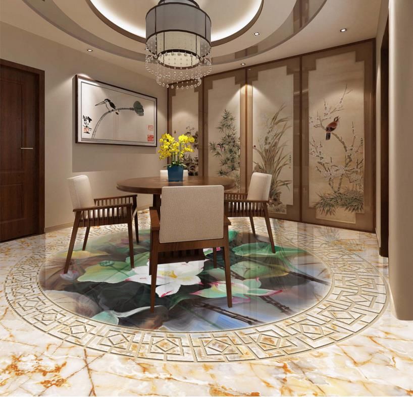Acheter Personnaliser 3d Plancher Lotus Etang Clair De Lune Marbre
