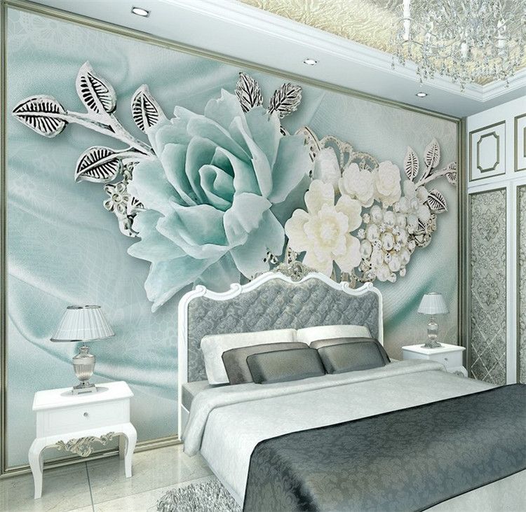 Acheter 3d Peinture Vert Fleur Murale Murale Pour Chambre A