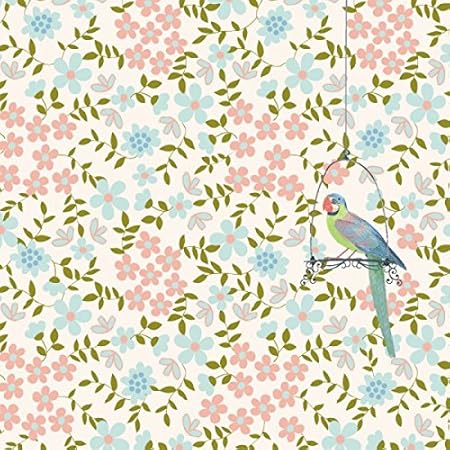 Cg28804 Rose Jardin Oiseaux Floral Bleu Vert Rose Galerie Papier