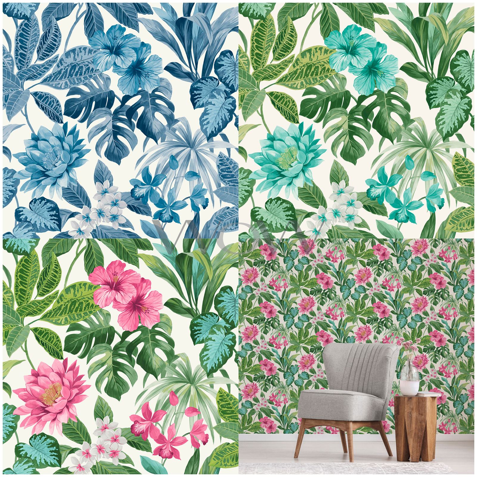 Fine Decor Tropica Rainforest Papier Peint Bleu Vert Rose