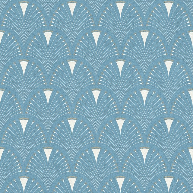 Moderne Art Deco Ventilateur Papier Peint Bleu Blanc Rasch