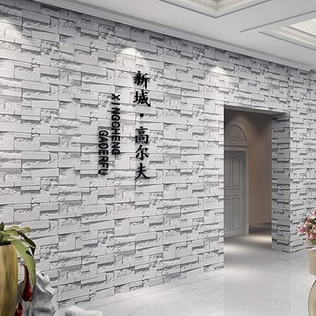 Shinehome Papier Peint Stetch Brique Blanc Noir Rouleau Papier