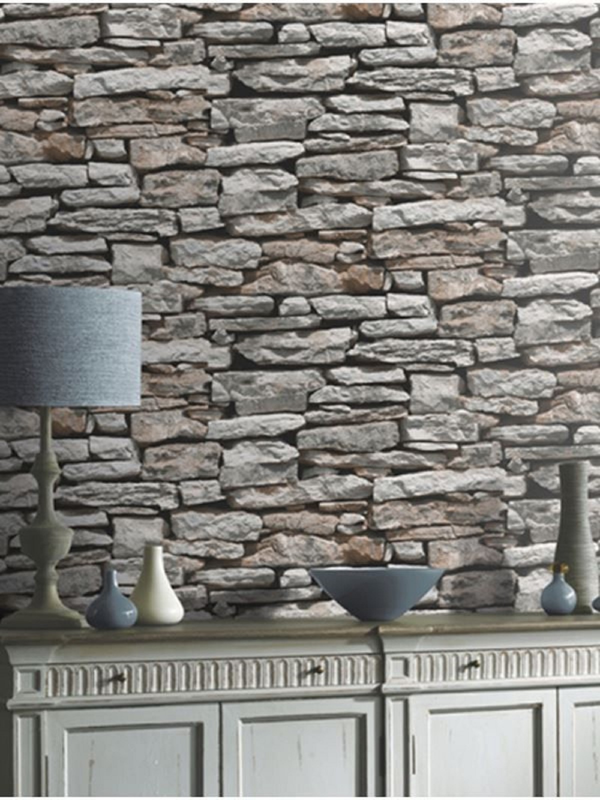 Brique Pierre Papier Peint Effet Rustique Marocain Mur Gris Blanc