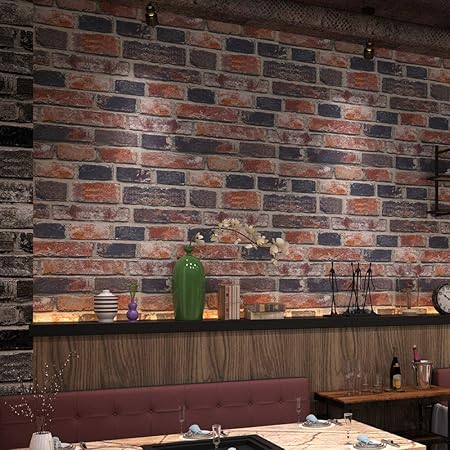 Vintage Papier Peint Brique Vinyle Mur Papier Roll Bar Restaurant