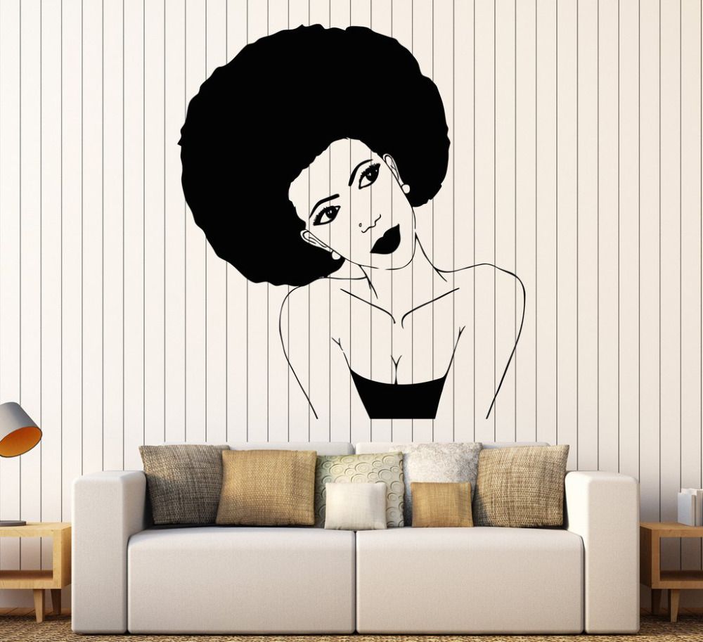 Acheter Afro Coiffure Vinyle Stickers Muraux Noir Africain Femme