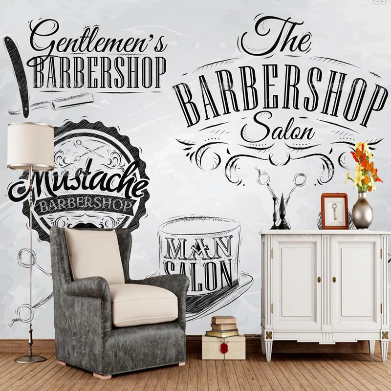 Papier Peint 3d Style Europeen Salon De Coiffure Theme Barbier