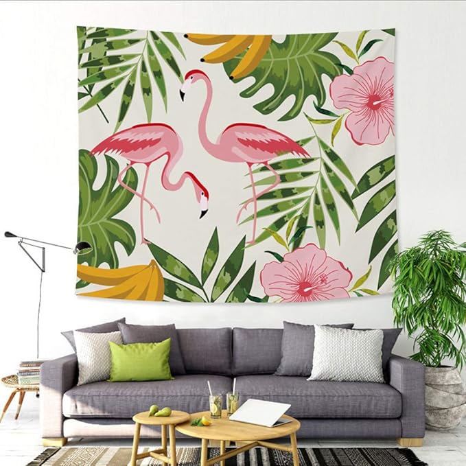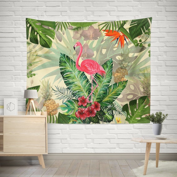 Flamant Rose Tapisserie Tapisserie Tropicale Palmier Feuille Etsy