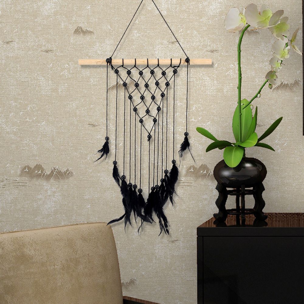 Noir Decoration Murale En Macrame Boheme Macrame Suspendu Tenture