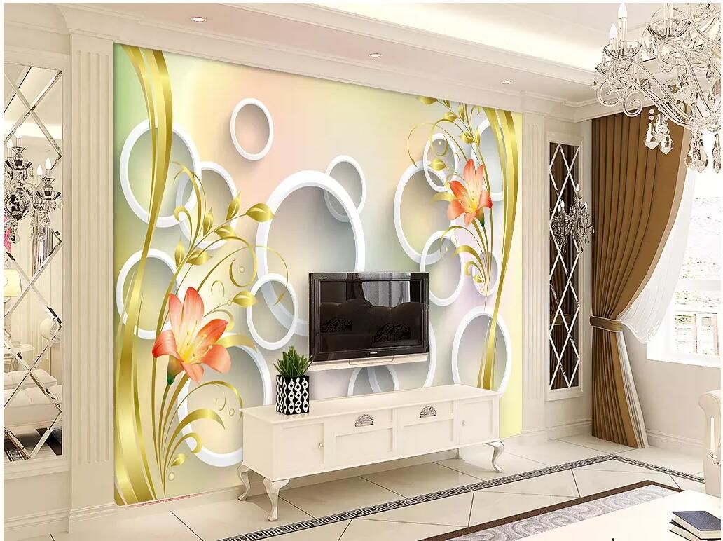 Acheter 3d Wallpaer Personnalise Photo Mural Cercle Dore Lis Fleur