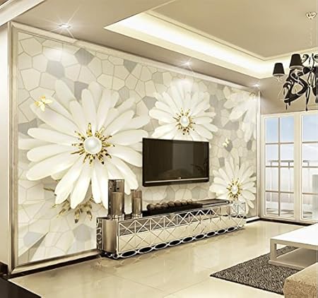 Papier Peint Mural 3d Personnalise Moderne Fleur Blanche Stereo