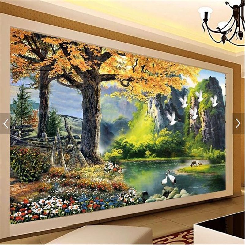Acheter Peinture Murale Papier Peint 3d Grand Arbre Foret Nature
