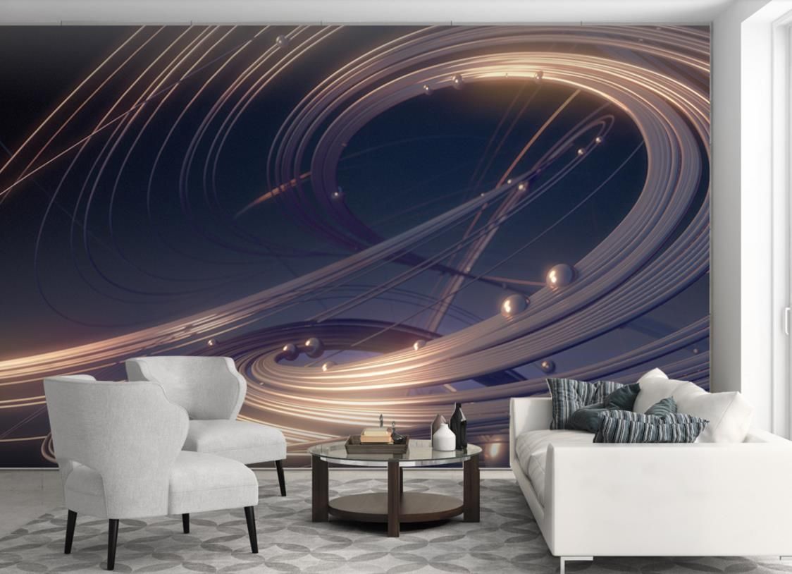 Moderne Espace Expansion Boule Murale Papier Peint 3d Art Creatif