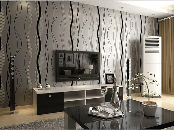 Papier Peint Moderne Intisse Motif Avec Rayures 3d Flocage Pour
