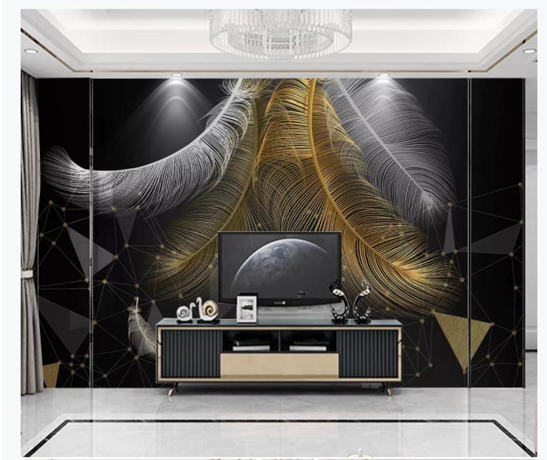 Acheter Papier Peint Mural 3d Moderne Minimaliste Plume Dor Motif