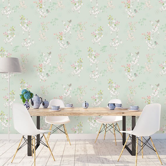 Papier Peint Japonais Fleur Oiseau Tapisserie Murale Sejour