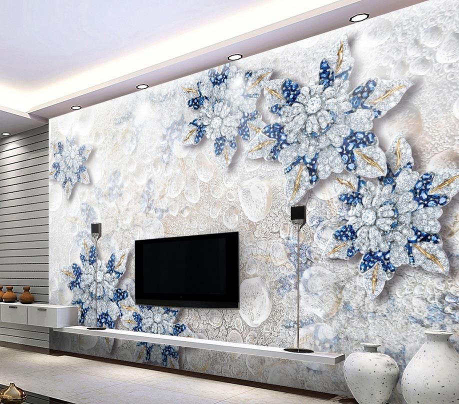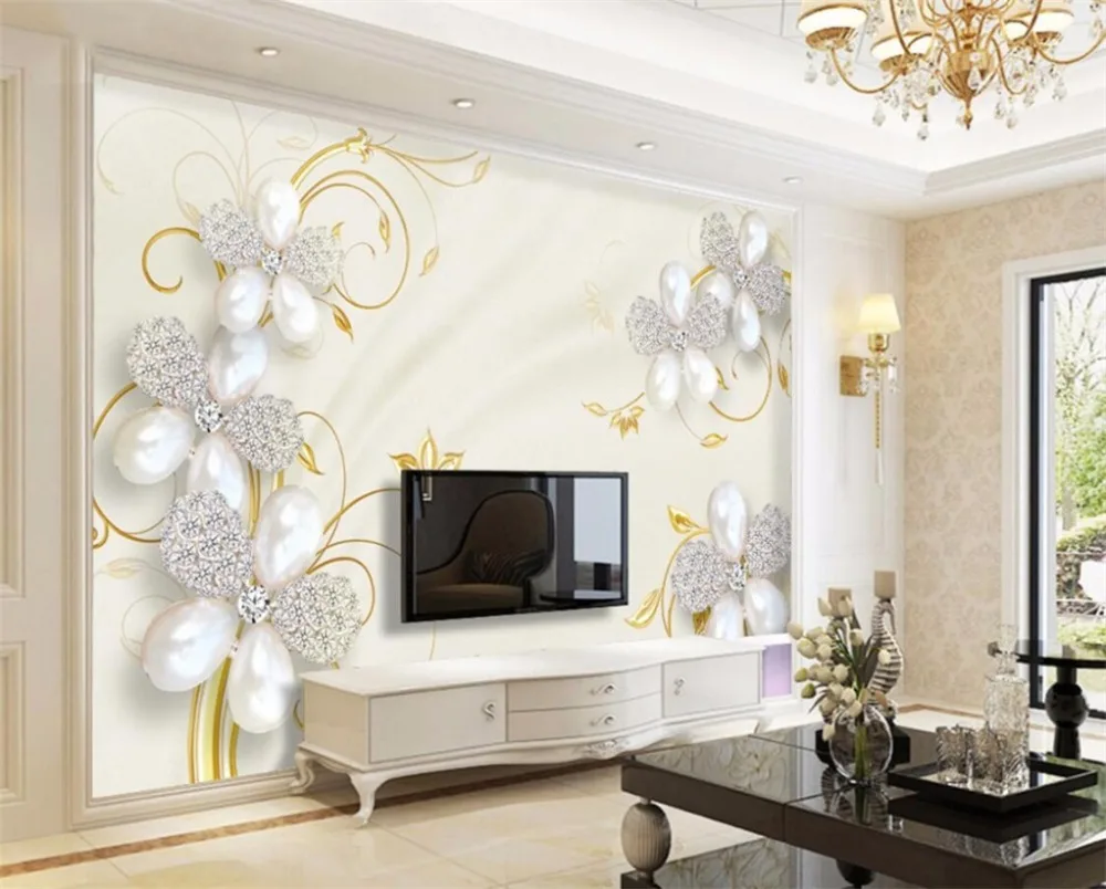 Gmyanbz Papier Peint Personnalise Luxe Diamant Fleur Bijoux Tv