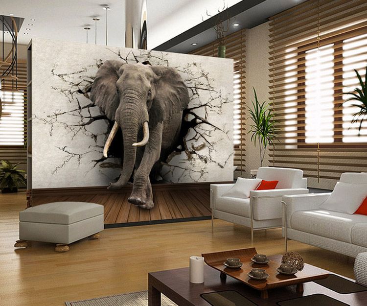 Acheter 3d Elephant Papier Peint Peintures Murales Pour Salon Mur