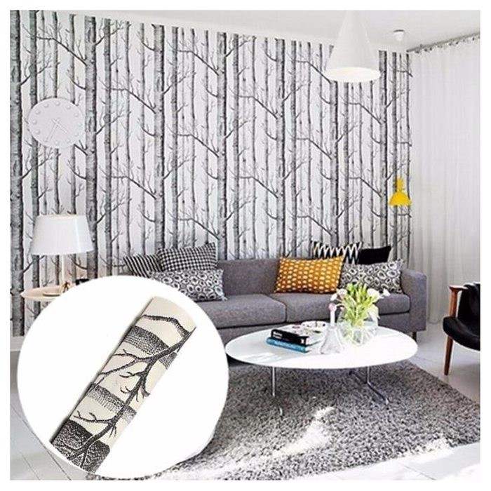 10m Papier Peint Murale 3d Rouleau Non Tisse Foret Arbre Bouleau