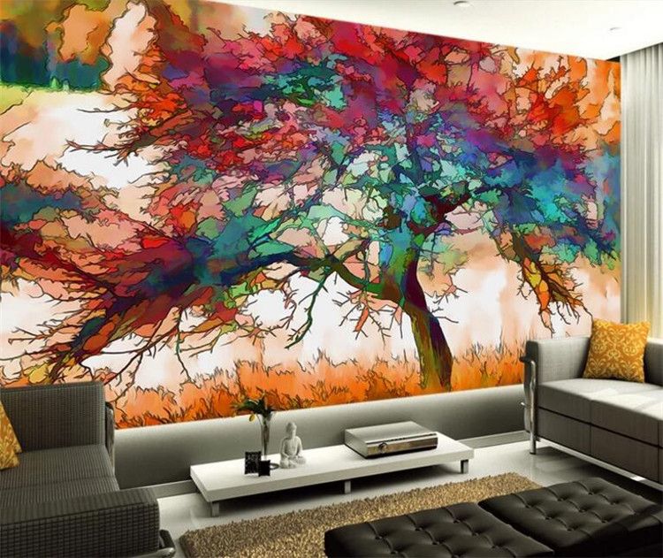Acheter Papier Peint 3d Moderne Abstrait Art Colore Arbre Photo
