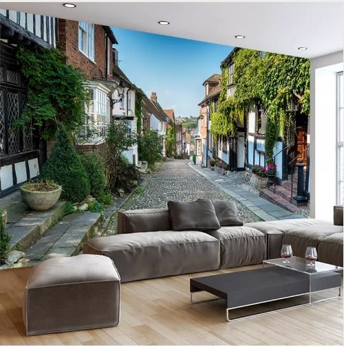Ponana Personnalise 3d Mural 3d Personnalise Rue Retro Batiment