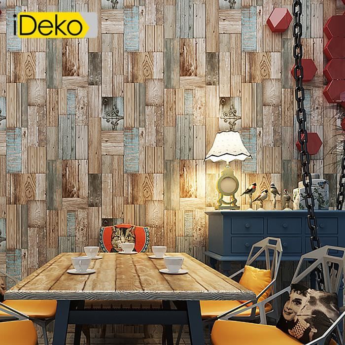 Ideko Retro 3d Pvc Papier Peint Bois Naturel Decoration Style
