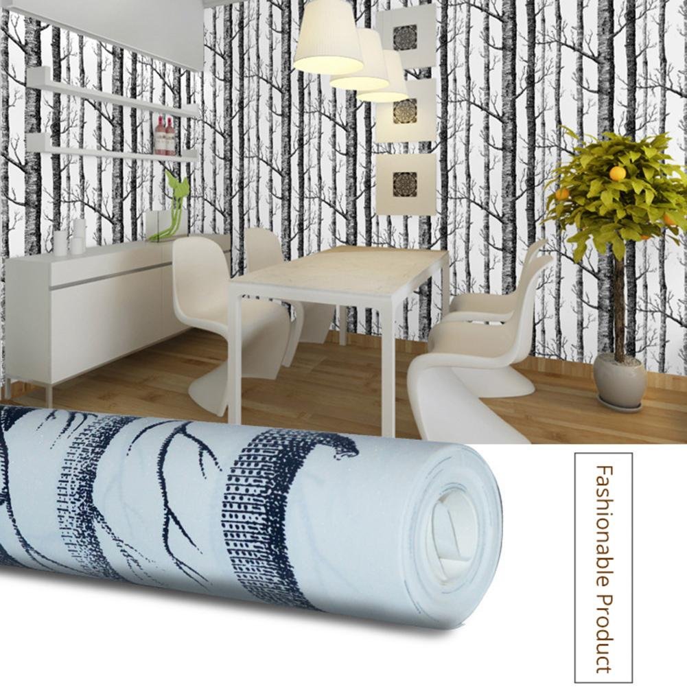 Bois Papier Peint De Bouleau Arbre Foret Noir Blanc Chambre Mur