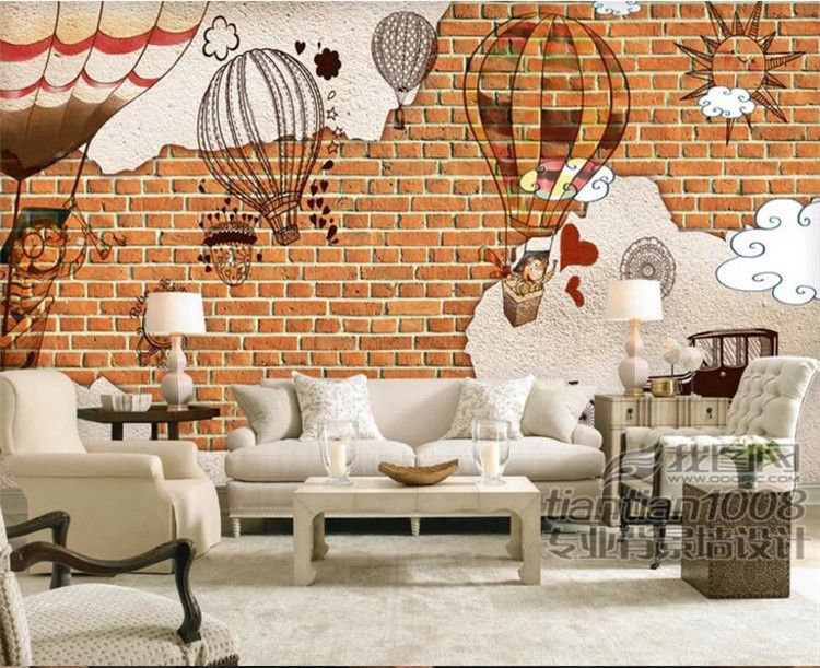 Acheter Papier Peint Retro Hot Air Ballon Graffiti Brique 3d Mur
