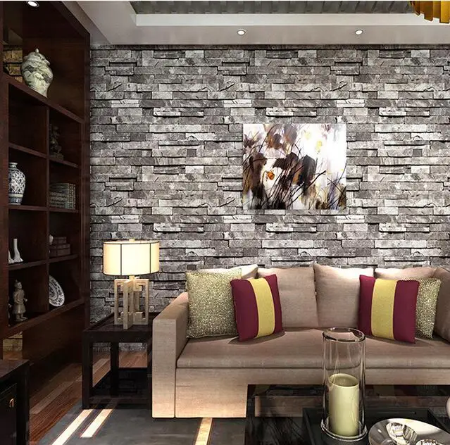 Moderne Vintage Brique Pierre Salon Papier Peint 3d En Relief Pvc
