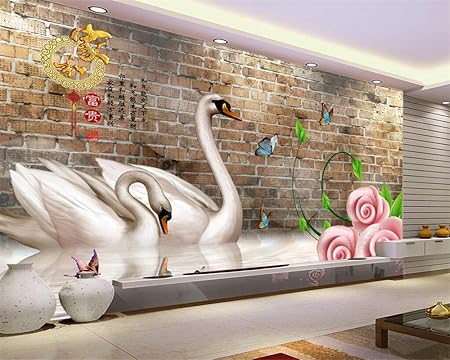 Wapel Papier Peint Photo Mur De Brique Rose Swan Sculpture De Jade