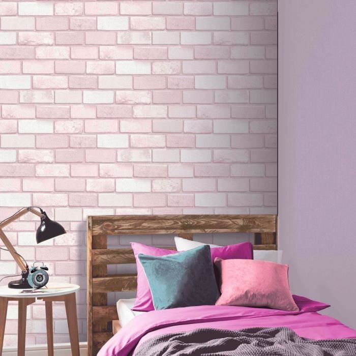 Papier Peint Brique 3d Rose Achat Vente Pas Cher