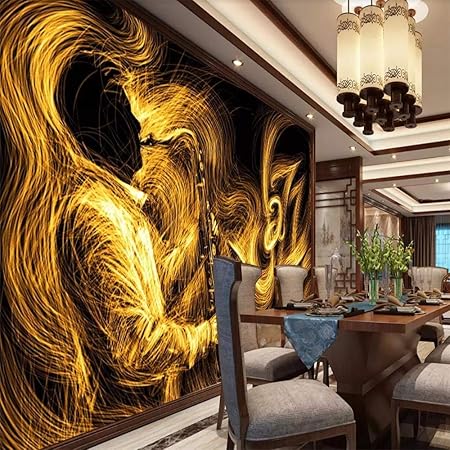 Papier Peint 3d Musique De Jazz Saxophone Dore Abstraite Moderne