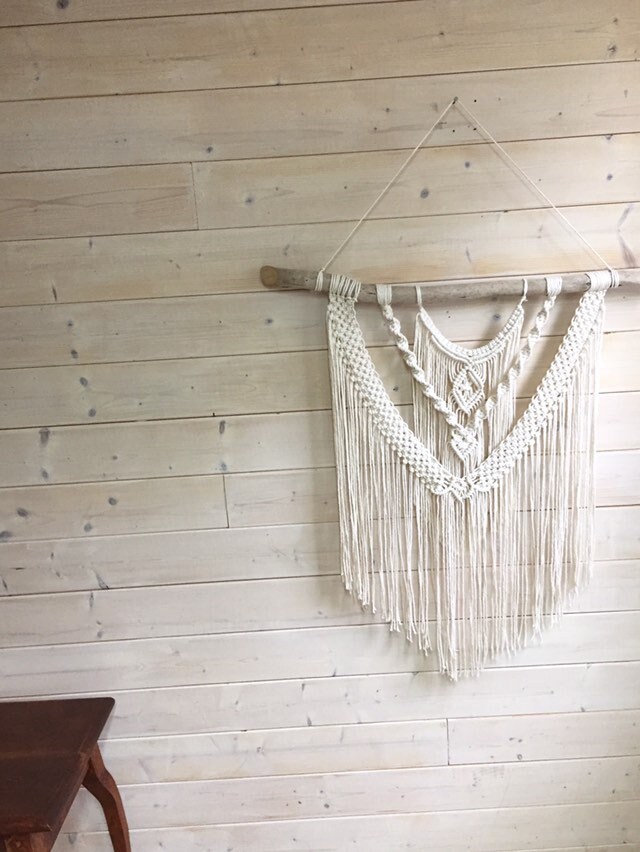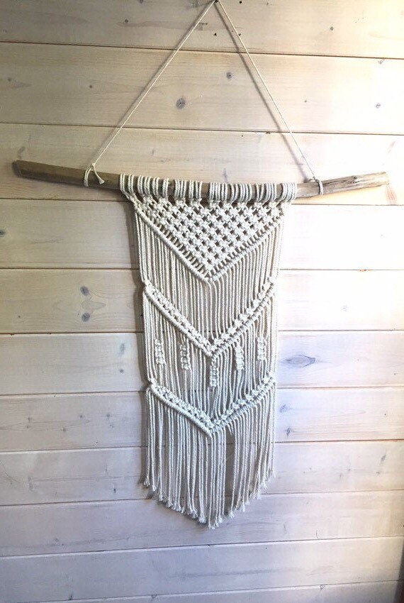 Macrame Beige Tenture Murale Macrame Mural Sur Bois Flotte Etsy