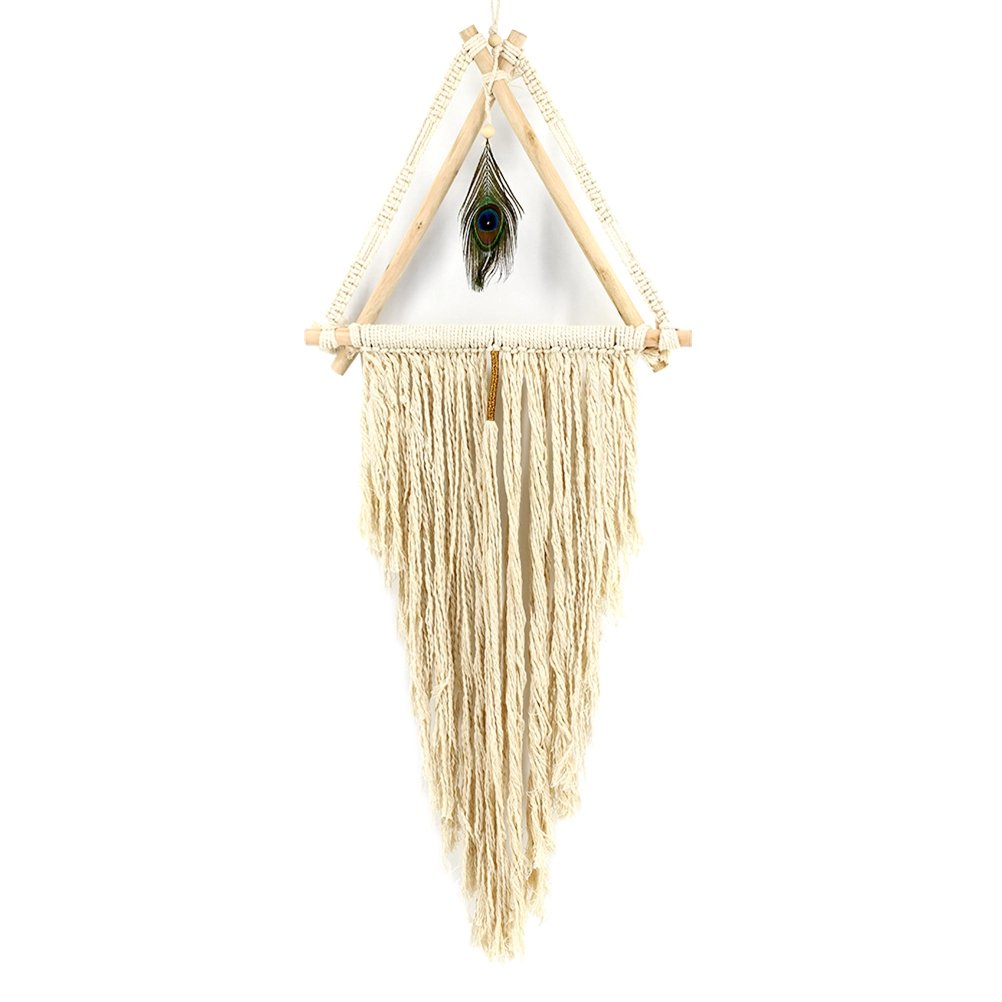 Plume Indi Beige Decoration Murale Boheme Macrame Mural