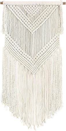 Sodial Boho Tenture Murale En Macrame Beige 16 X 36 Pouces