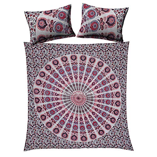 Couverture De Jour Paon Mandala Rouge Marron 230x200cm Coton Pareo