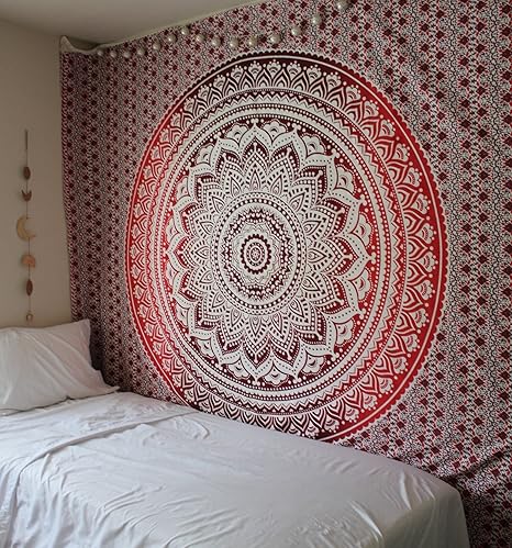 Large Red Indian Tapestry Ombre Mandala Cotton Wall Hanging Bed