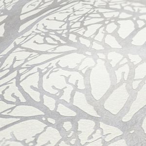 Papier Peint Intisse 34245 2 X Ray Rameau De Feuilles Gris Blanc