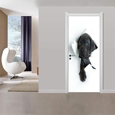 Dsaomo Stickers Porte Poster Chien Papier Peint Porte Trompe L