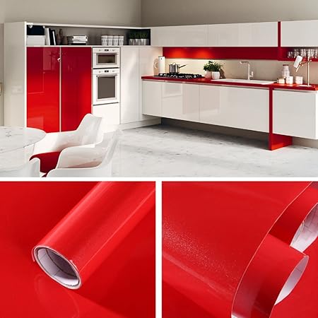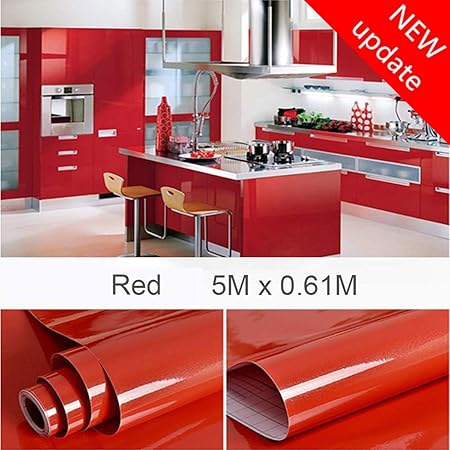 Kinlo 5 0 61m Papier Peint Auto Adhesif Rouge Armoire De Cuisine