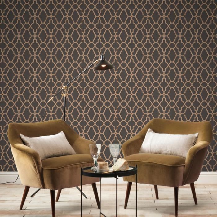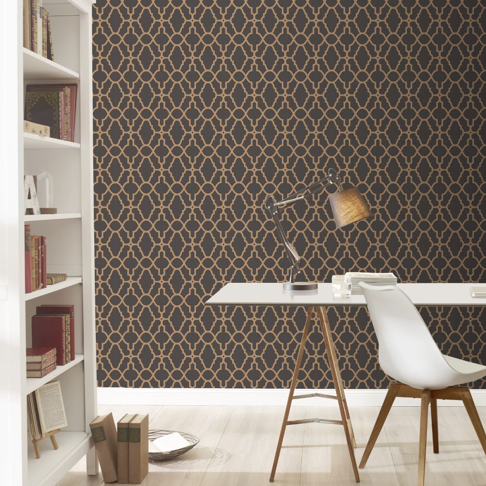 Casablanca Trellis Papier Peint Fretwork Noir Et Cuivre Rasch
