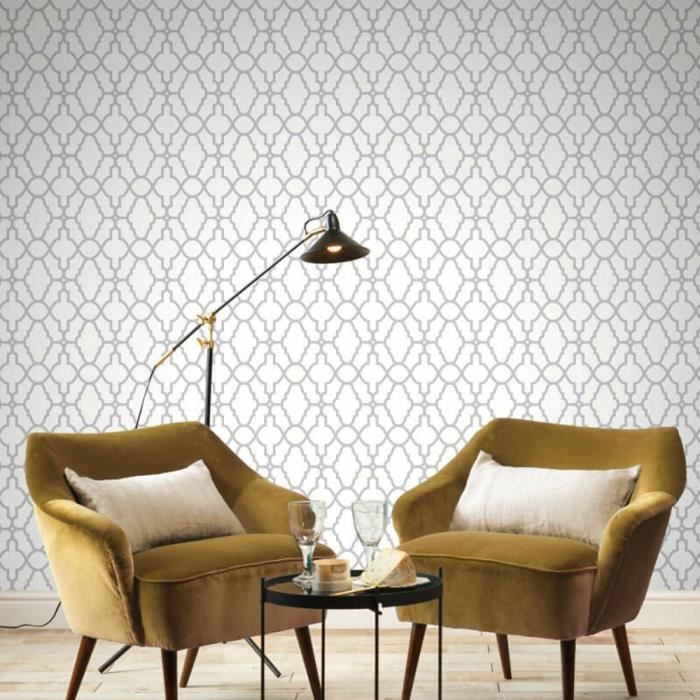Quartz Treillis Geometrique Papier Peint Argent Et Gris Fin Decor